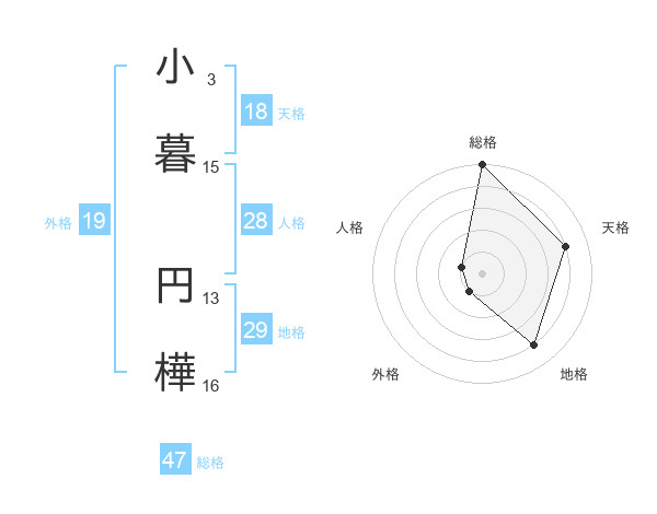 小暮 円樺さんを姓名の画数から五運を鑑定