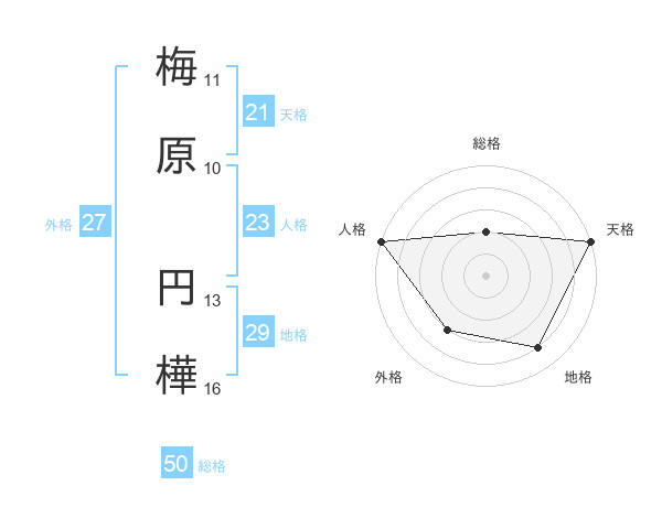梅原 円樺さんを姓名の画数から五運を鑑定