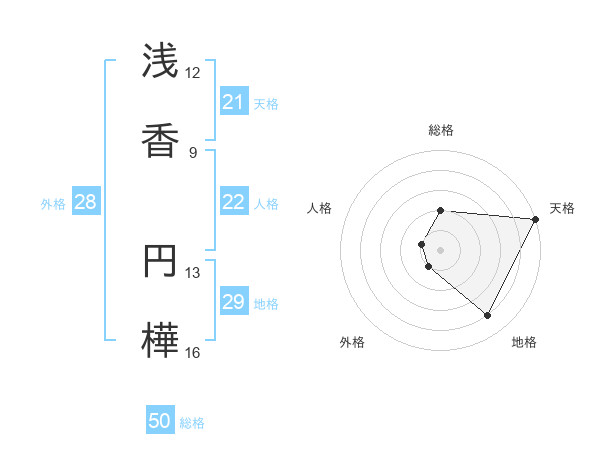 浅香 円樺さんの天格は21画の5点!