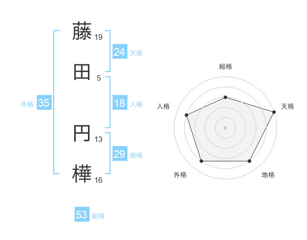 藤田 円樺さんを姓名の画数から五運を鑑定