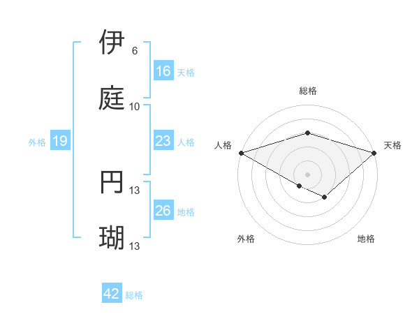 伊庭 円瑚さんを姓名の画数から五運を鑑定