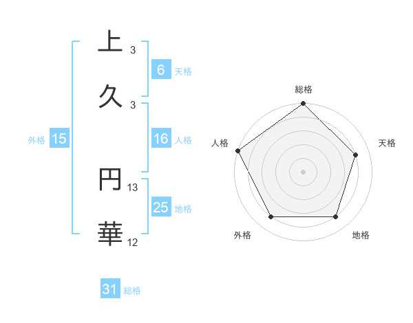 上久 円華さんを姓名の画数から五運を鑑定
