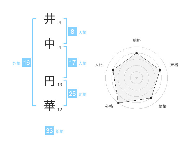 井中 円華さんの総格は33画の4点!