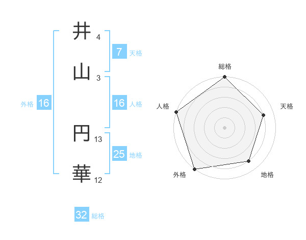井山 円華さんの外格は16画の5点!