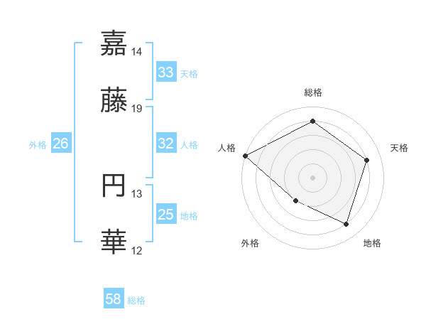 嘉藤 円華さんの総格は58画の4点!
