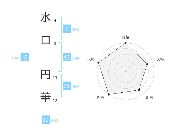 水口 円華さんの総格は32画の5点!
