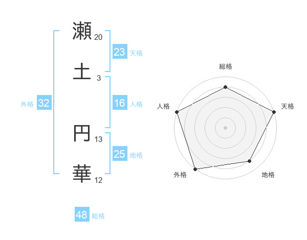 瀬土 円華さんの外格は32画の5点!