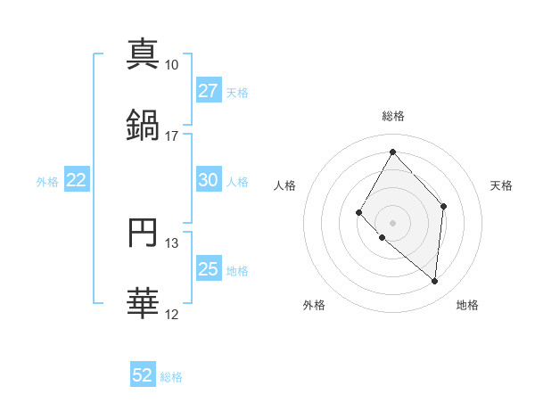真鍋 円華さんの総格は52画の4点!