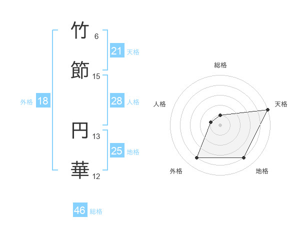 竹節 円華さんの天格は21画の5点!
