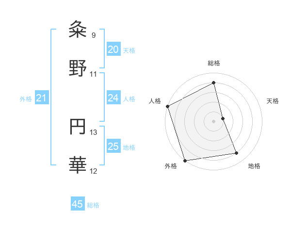 粂野 円華さんの総格は45画の4点!