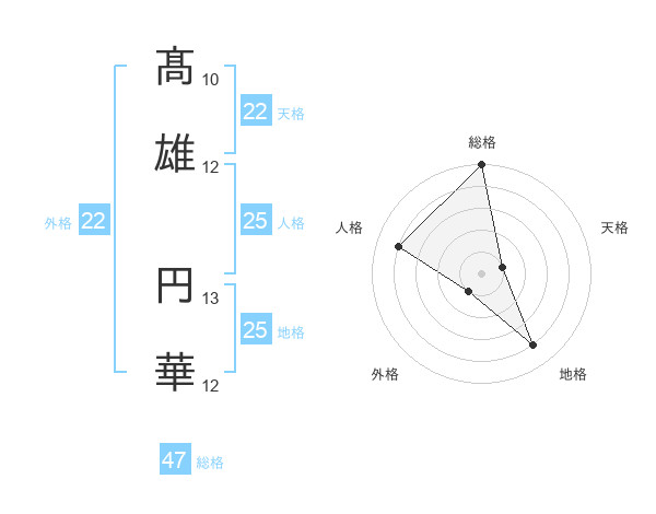 髙雄 円華さんを姓名の画数から五運を鑑定