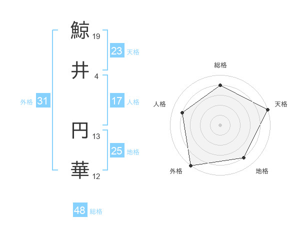 鯨井 円華さんを姓名の画数から五運を鑑定