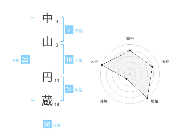 中山 円蔵さんの総格は38画の4点!