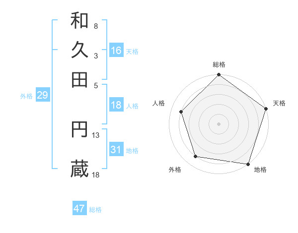 和久田 円蔵さんを姓名の画数から五運を鑑定
