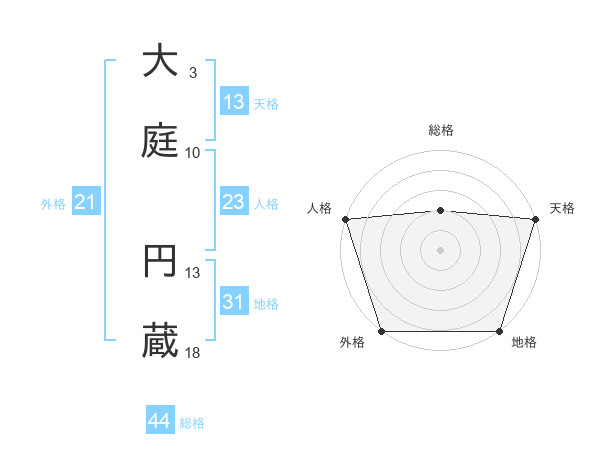 大庭 円蔵さんを姓名の画数から五運を鑑定
