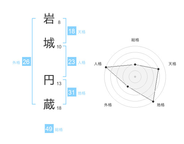 岩城 円蔵さんの総格は49画の2点!
