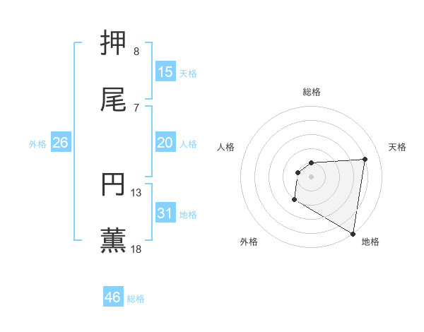 押尾 円薫さんの総格は46画の1点!