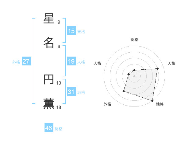星名 円薫さんの総格は46画の1点!