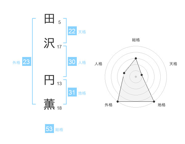 田沢 円薫さんを姓名の画数から五運を鑑定