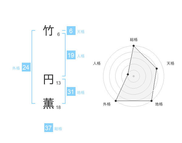 竹 円薫さんの総格は37画の5点!