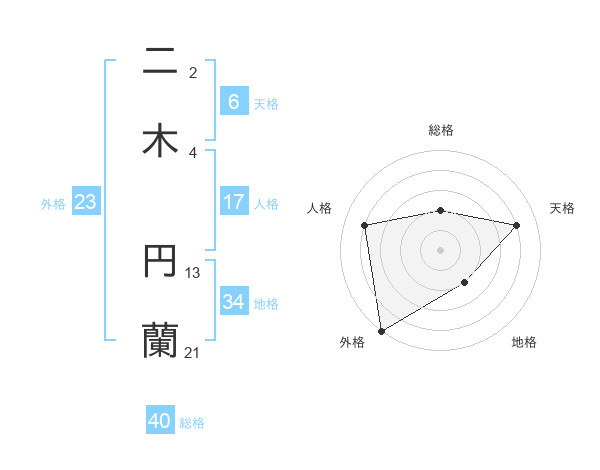 二木 円蘭さんの外格は23画の5点!
