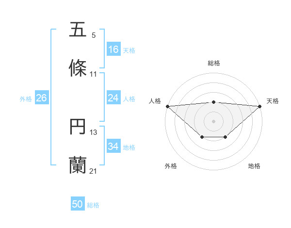 五條 円蘭さんの天格は16画の5点!