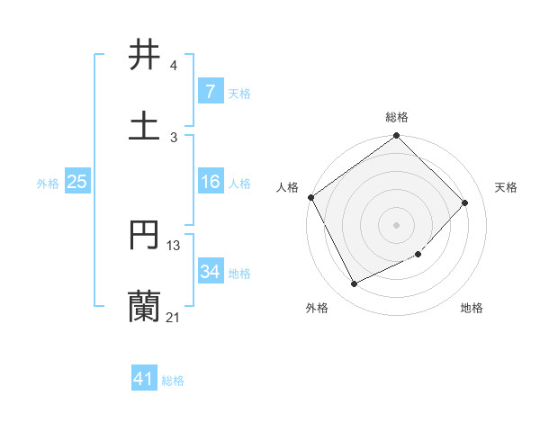 井土 円蘭さんの外格は25画の4点!