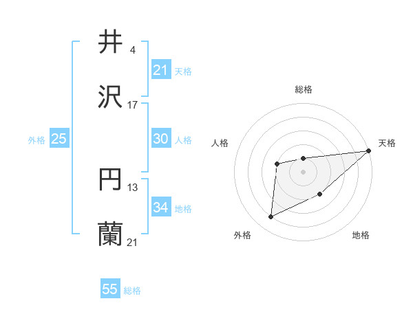 井沢 円蘭さんを姓名の画数から五運を鑑定