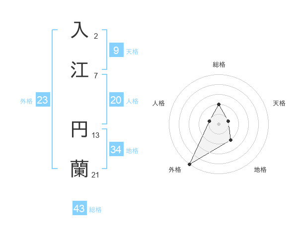 入江 円蘭さんを姓名の画数から五運を鑑定