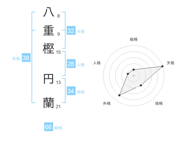 八重樫 円蘭さんを姓名の画数から五運を鑑定