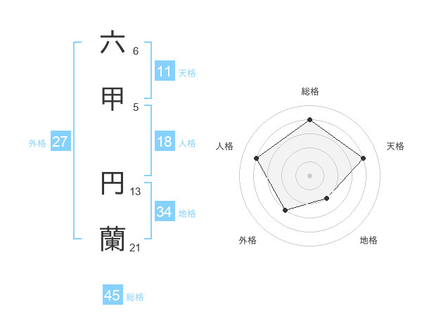 六甲 円蘭さんの総格は45画の4点!