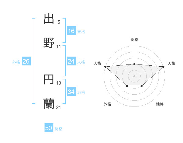 出野 円蘭さんを姓名の画数から五運を鑑定