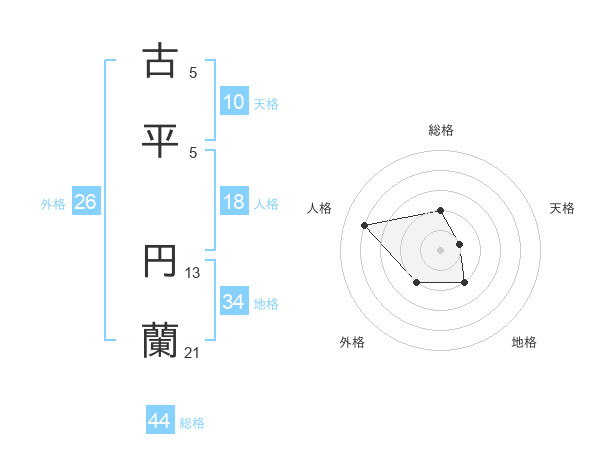 古平 円蘭さんを姓名の画数から五運を鑑定