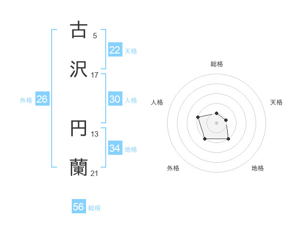 古沢 円蘭さんを姓名の画数から五運を鑑定