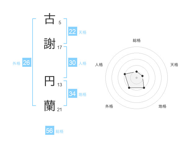 古謝 円蘭さんを姓名の画数から五運を鑑定