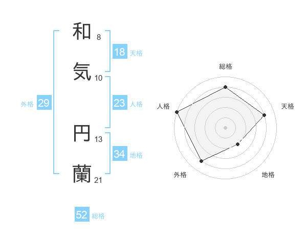 和気 円蘭さんの総格は52画の4点!