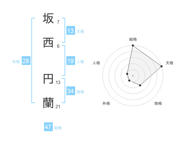 坂西 円蘭さんを姓名の画数から五運を鑑定