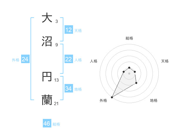 大沼 円蘭さんの外格は24画の5点!