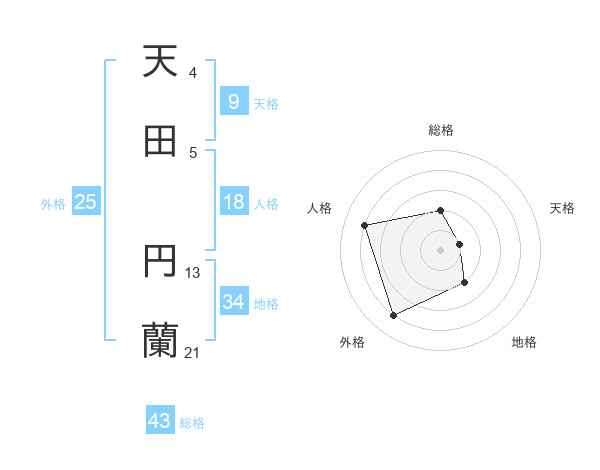 天田 円蘭さんを姓名の画数から五運を鑑定