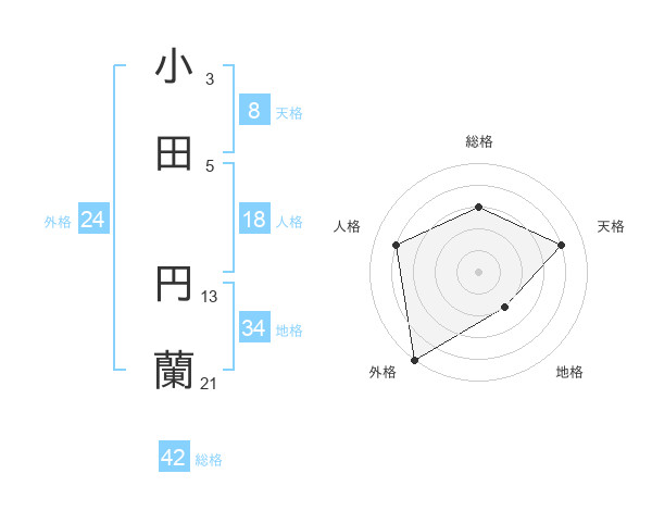 小田 円蘭さんの総格は42画の3点!