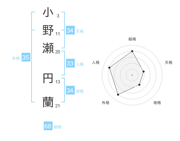 小野瀬 円蘭さんを姓名の画数から五運を鑑定