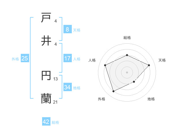 戸井 円蘭さんの総格は42画の3点!