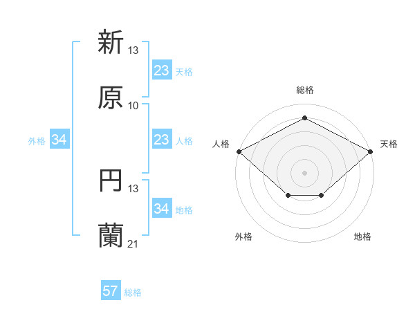 新原 円蘭さんの外格は34画の2点!