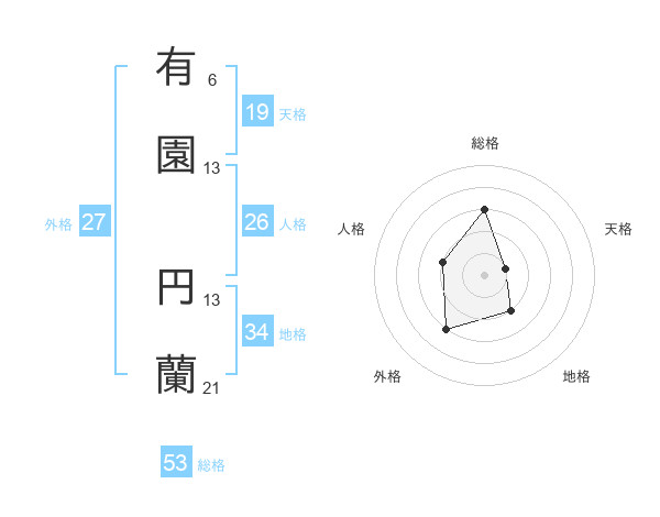 有園 円蘭さんを姓名の画数から五運を鑑定