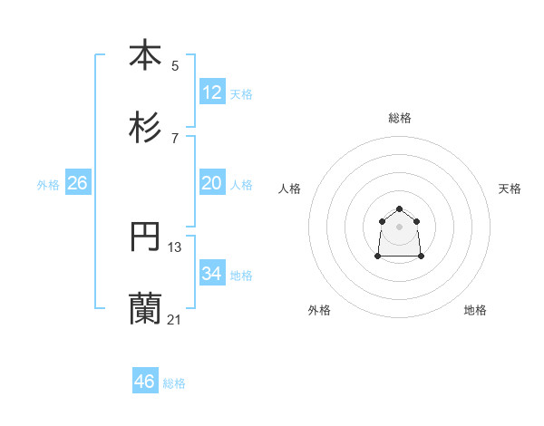 本杉 円蘭さんの総格は46画の1点!