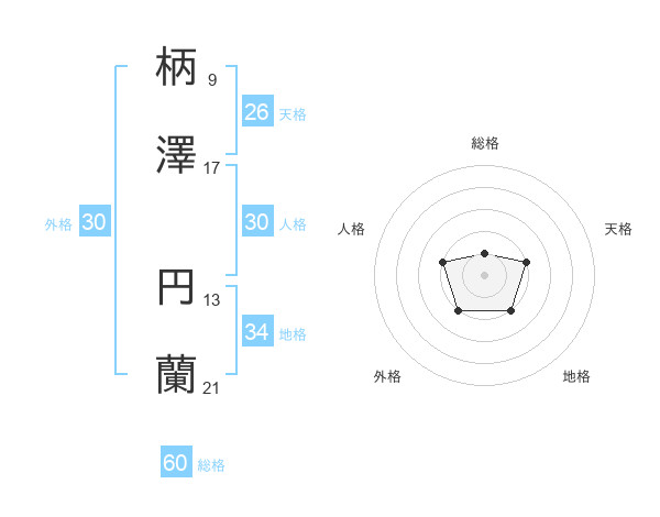 柄澤 円蘭さんを姓名の画数から五運を鑑定