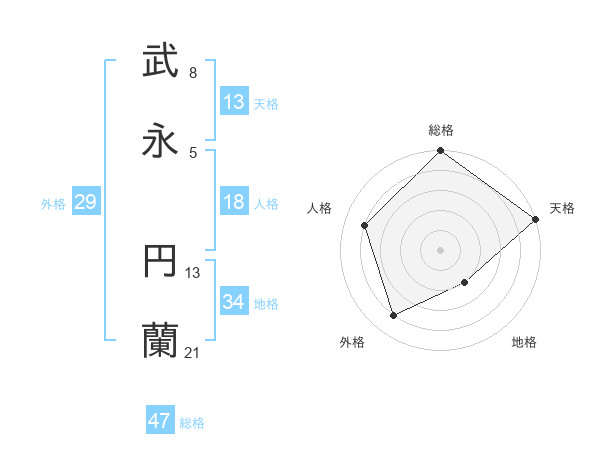 武永 円蘭さんを姓名の画数から五運を鑑定