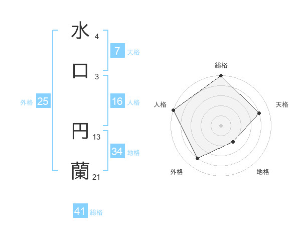 水口 円蘭さんの総格は41画の5点!