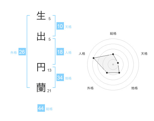 生出 円蘭さんを姓名の画数から五運を鑑定
