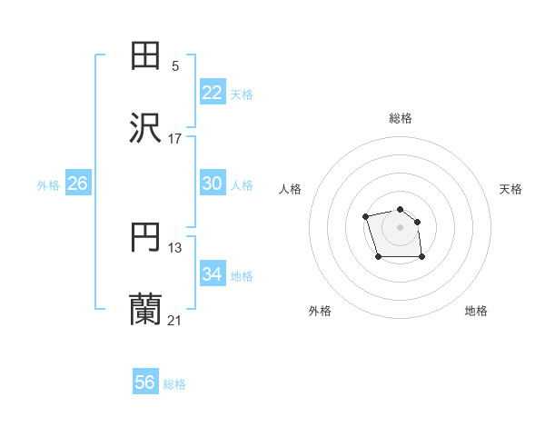 田沢 円蘭さんを姓名の画数から五運を鑑定